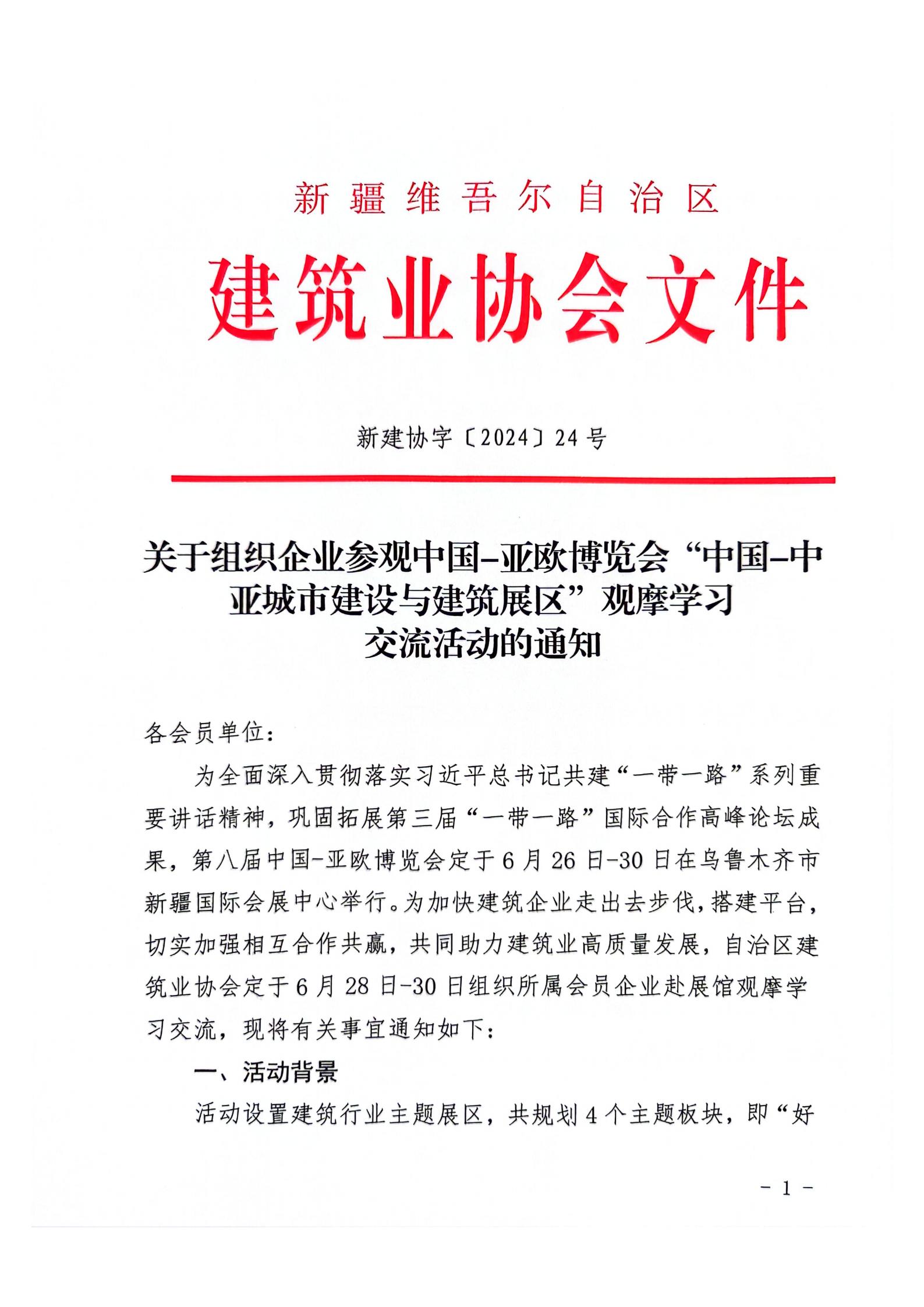 • 关于组织企业参观中国-亚欧博览会“中国-中亚城市建设与建筑展区”观摩学习交流活动的通知